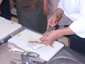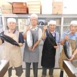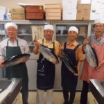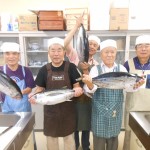 今年は新しい方が4名参加しまして総勢19名で、『かつお』を三枚におろし、たたき・刺身・づけを造りました。