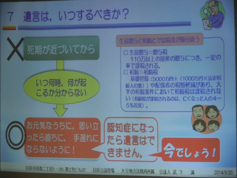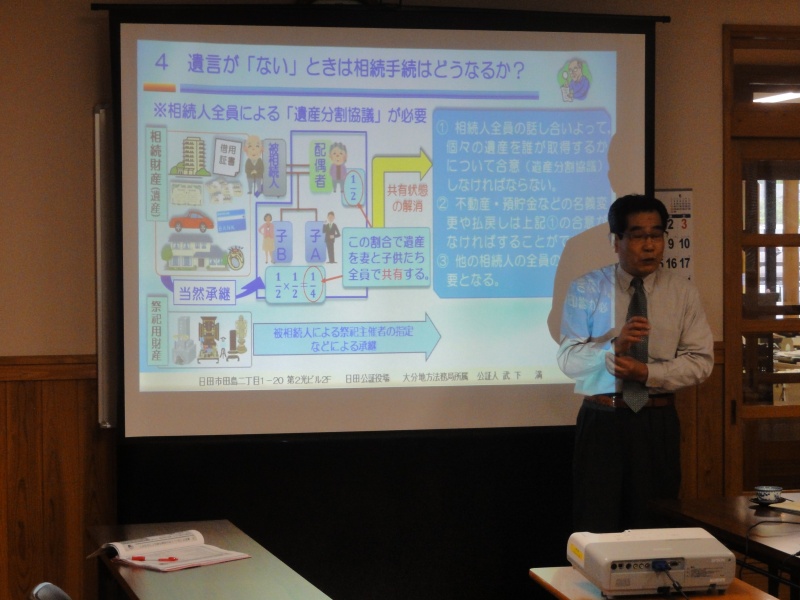 本日(20日)元気な幸齢者のマナビ塾の3講目が開催されました。 東部包括支援センターさんと健康リーダーさんの協力を得ながら 本日も無事に開催できました。 1時間目:身体の体操・血圧測定 2時間目:頭の体操 3時間目:趣味の時間 本日の3時間目は塾生の希望で公証役場の方に遺言書についての講義をしていただきました。 やるのは“いまでしょ” 武下 満先生ありがとうございました。次回も宜しくお願いいたします。
