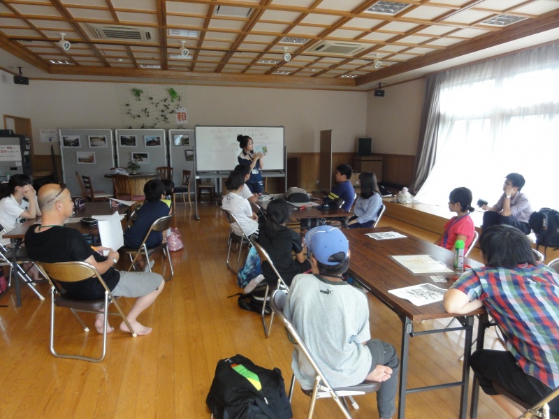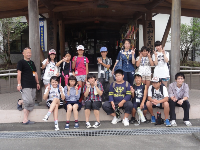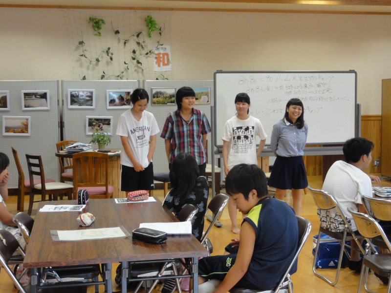 ボランティアで来てくれた三隈高校の生徒さん(三年生)4名にお礼を言ってます。