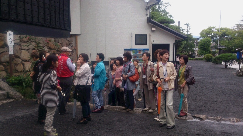 大石峠で大型自動車の事故があり、頼んでおいたガイド時間に間に合うかドキドキしましたが、無事中津城に到着。出発時には降っていた雨も上がり、今、中津城で官兵衛さんのお勉強中です。