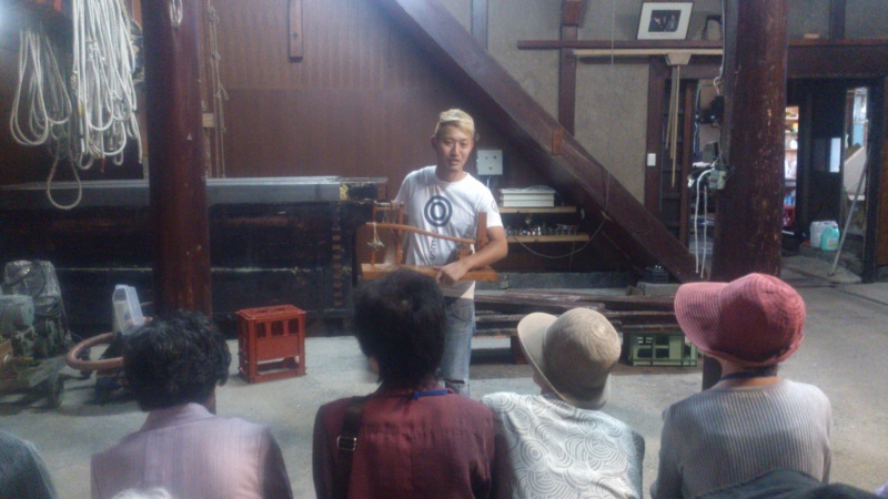今、白糸酒造さんで8代目の社長から甘酒の効用の話しやここ白糸酒造伝統の酒の絞り方(ハネ木絞り)などお酒の話しを学んでいます。公民館には6時頃に帰る予定となっています。