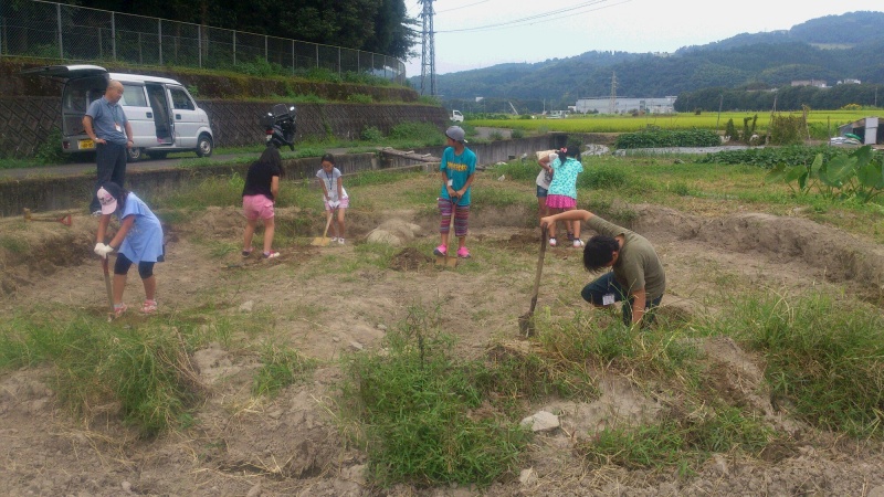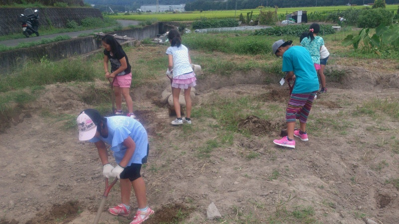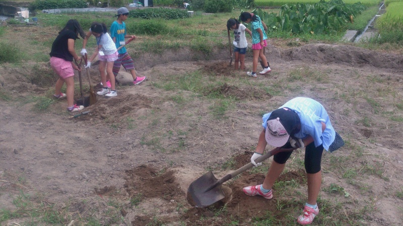 今日は、竪穴式住居の柱用の穴を掘っています。柱が倒れないように50センチ以上、4箇所。あと少しだ!がんばろう!