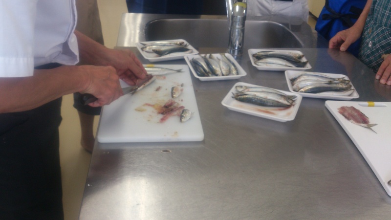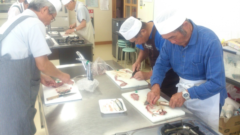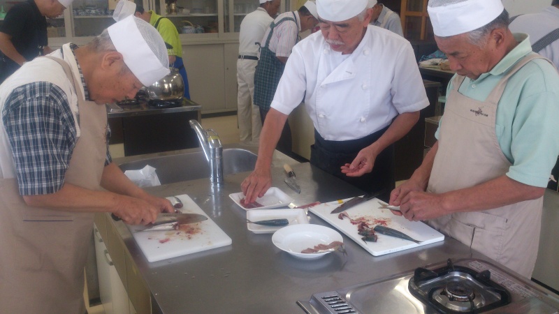 第5講。今日は、魚料理ということで、イワシの蒲焼き丼と鱧の湯引き
