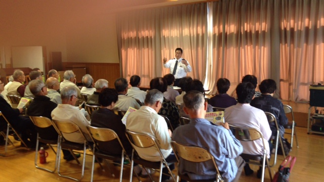 第1講として、石井駐在署の高橋さんを招き特殊詐欺の話。県警の交通企画課から鳴海さんを招いて