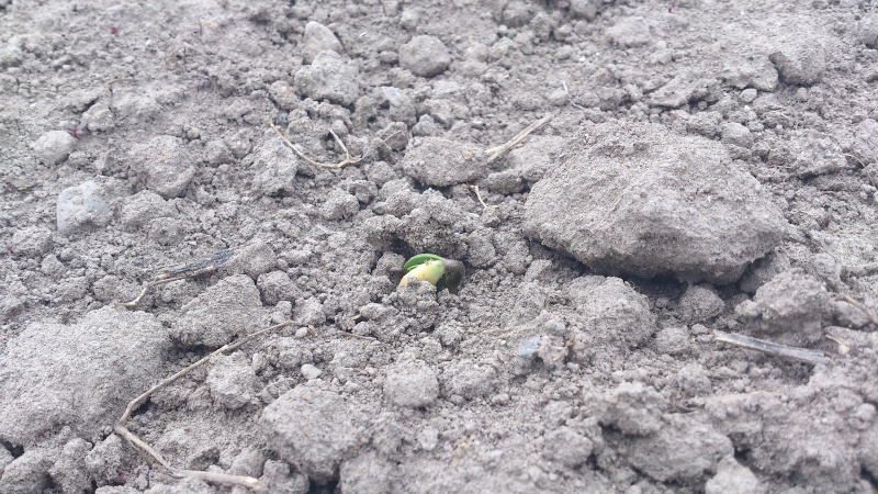 6/8(土)に種まきした大豆が、早くも芽吹いています(第1号です)♪