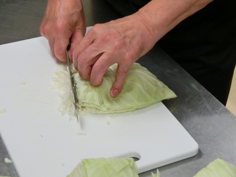ソテーすると解らなくなってしまいます。すると筋肉に平行に切ると
