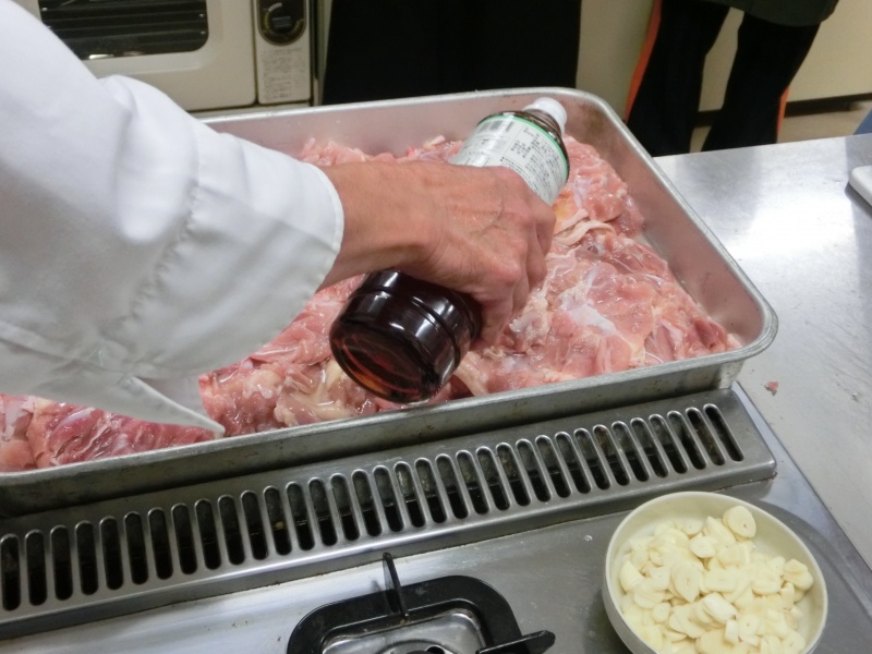 下味をつけています。酒・うすくち醤油・味の素・粉胡椒