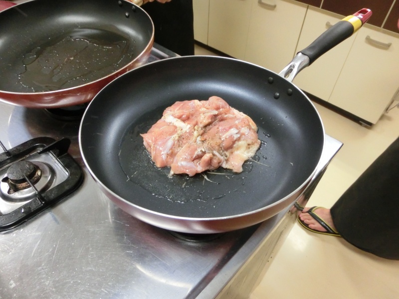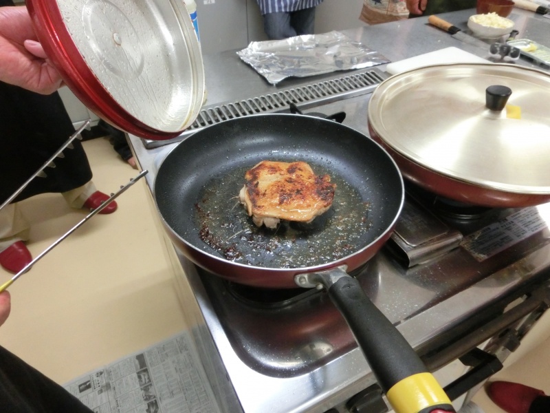 16日(月)2名欠席で13名で第2講のチキンソテーガーリックソース