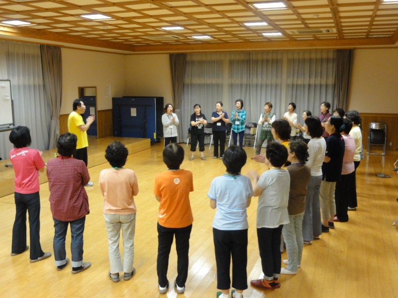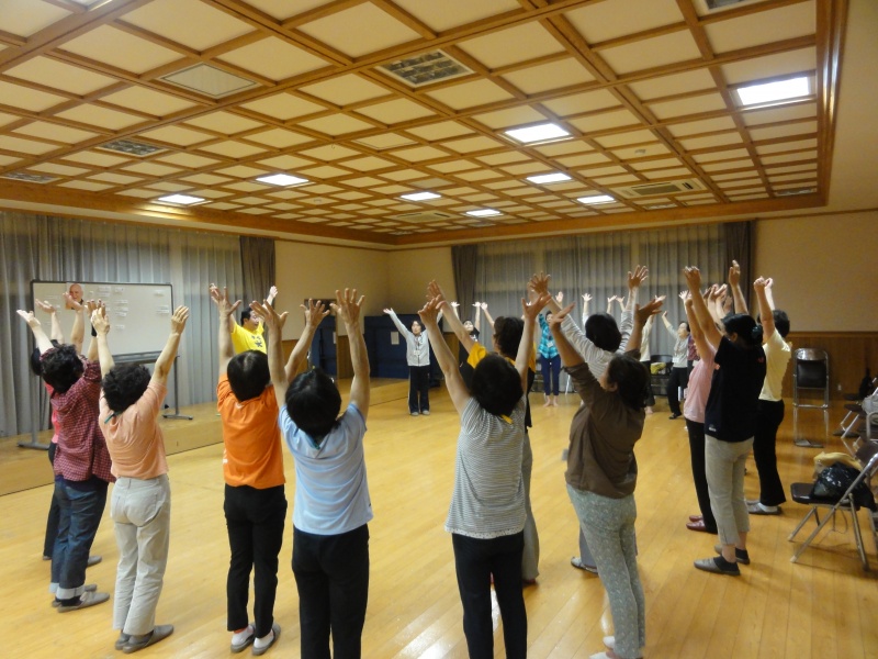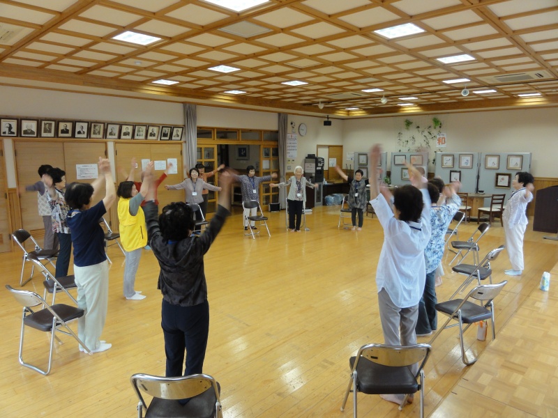 まずは健康リーダーさんの指導で身体をほぐしましょう。