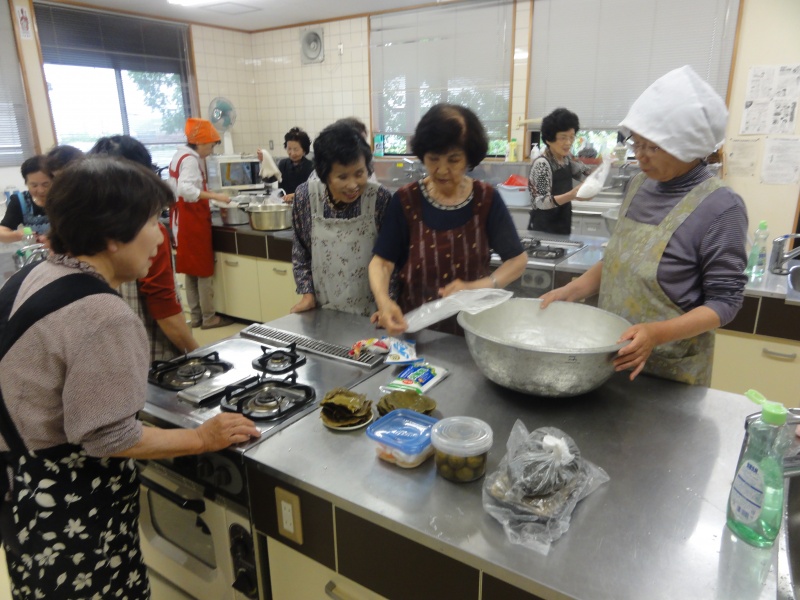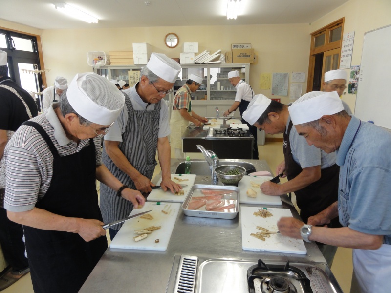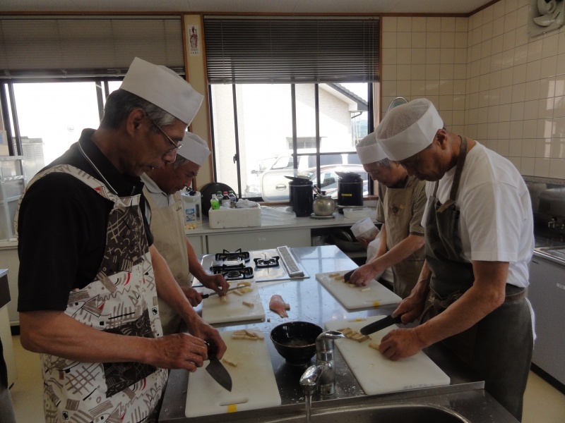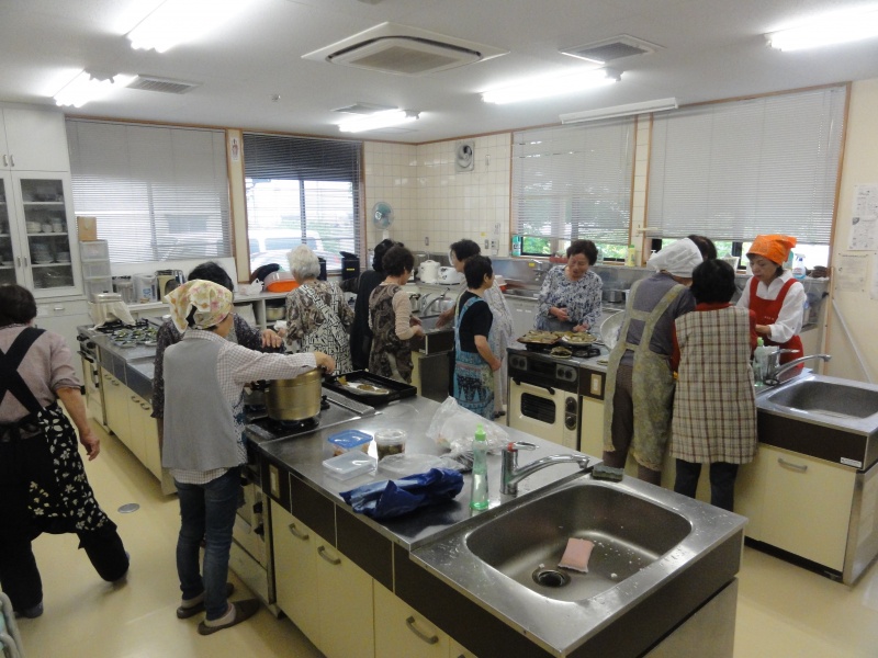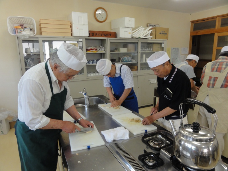 さて、買い物をすませ。公民館で弁当づくり開始です!