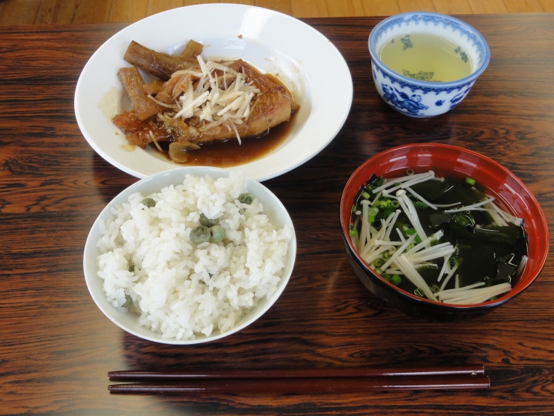 お吸い物は急遽作りました。ご飯は教室生が自分の畑で作った、豆御飯です。