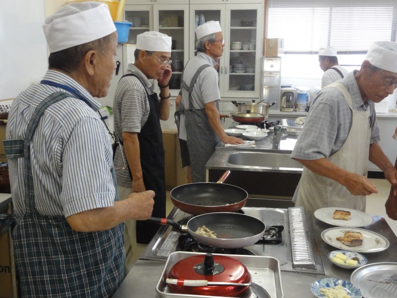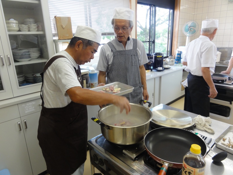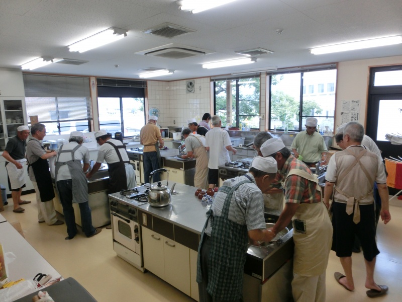 緑町の方達との交流もおこない、今2日目の朝食づくりをやってます。