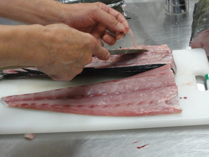 3枚におろし皮を剥いでいきます。3枚におろすときは