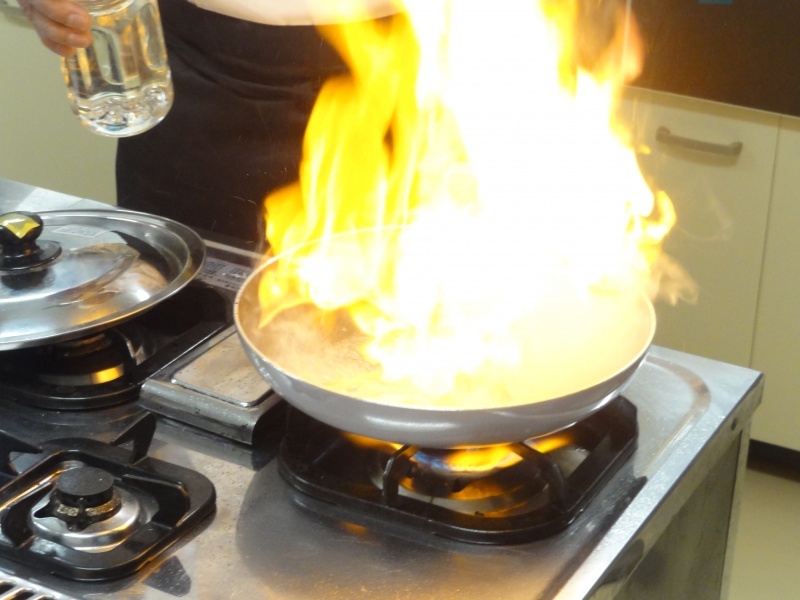 酒に火を入れてアルコール分をとばします。(ちょっとかっこいいです)