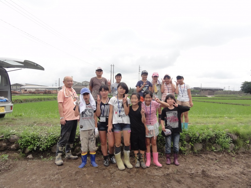 元気に記念撮影です。お疲れ様。秋には大豆がいっぱい採れるといいね。