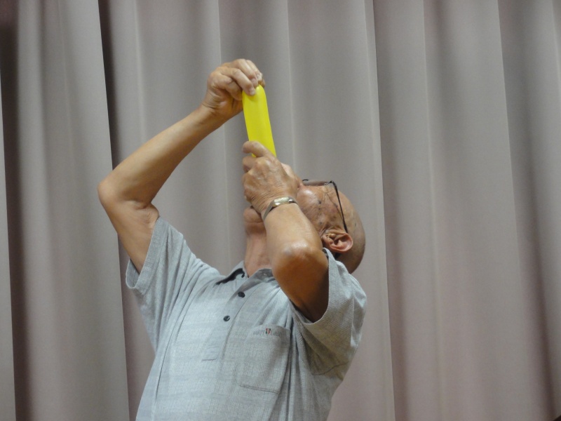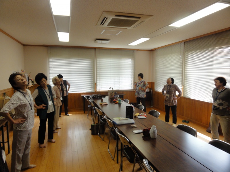 体操です。集会室が臨時福祉給付金の説明会場になったので狭い処でごめんなさい。