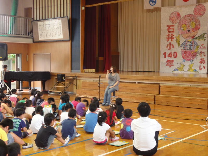 本日(4日)石井小学校で、mon(もん)さんの人権コンサートが日田市教育委員会主催、石井小学校育友会・五和公民館共催で午後1時30分より