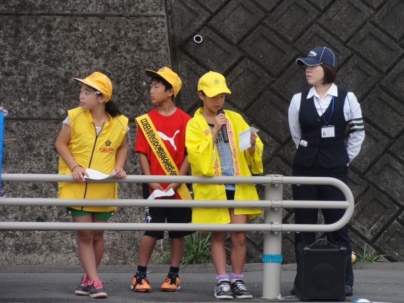 ドライバーに声をかけています。「安全運転でお願いしま~す」