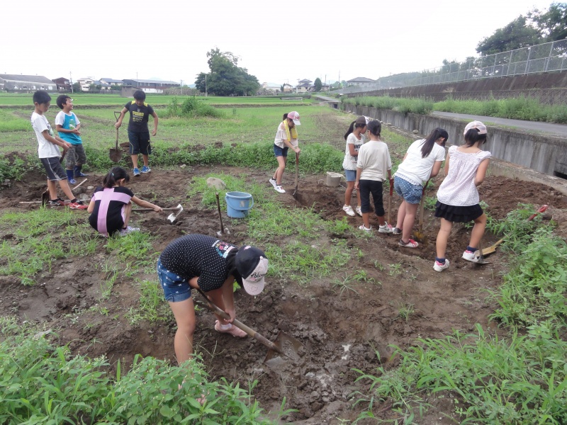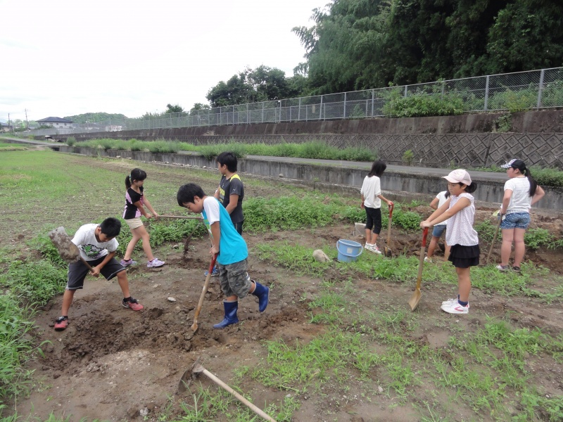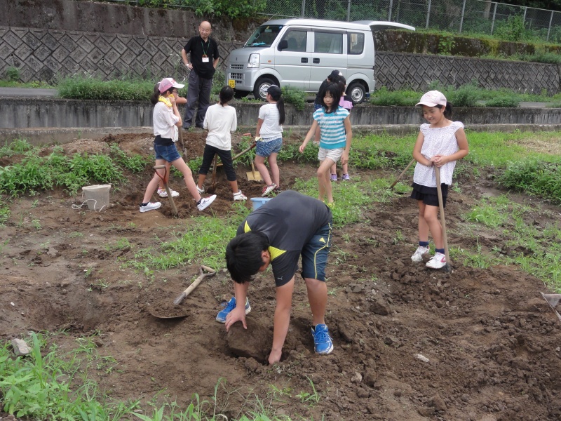 7月19日(土) ごわチャレンジスクール 畑で雑草取りと大豆に土かけ