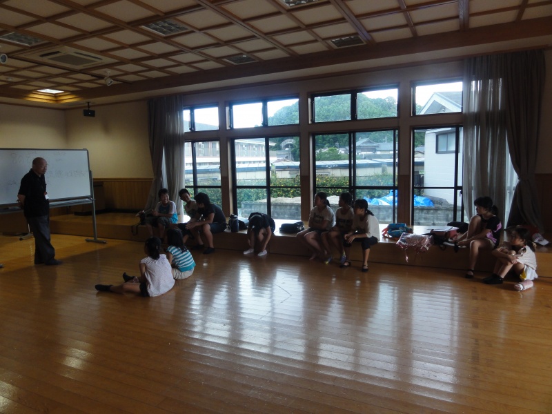 公民館へ帰って8月の水生生物キャンプの説明と質問を受けています。