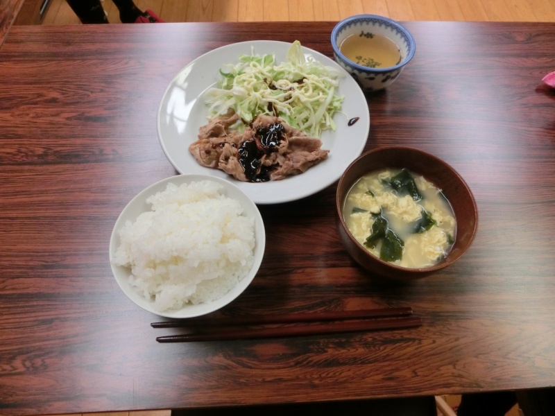 豚肉の創作料理と卵スープ 美味しかったです。肉にかかってるソースも自家製です。
