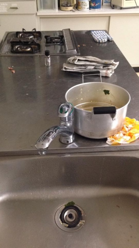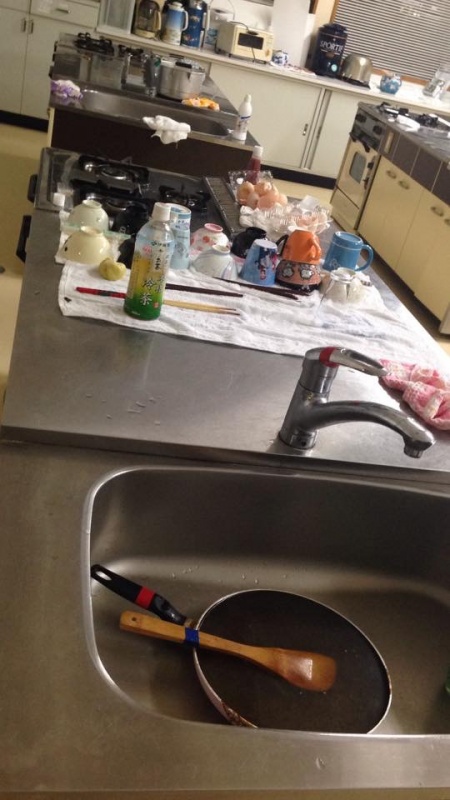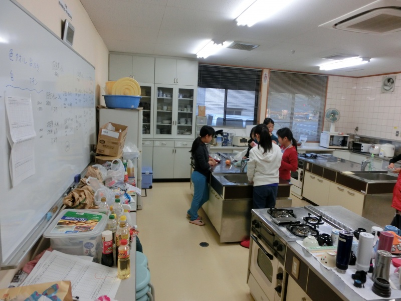 子ども達は、もらい湯に出かけました。しっかり地区の方と交流してくれればと思いますが……..調理室は、まだこの状態