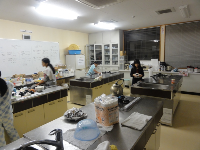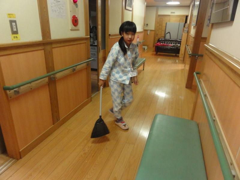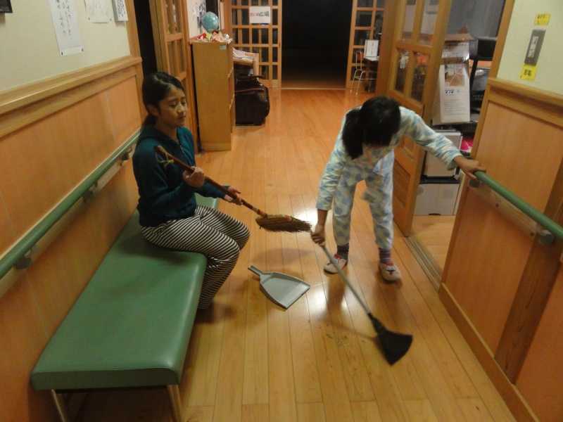 調理室の片付けも終わりました。今度は夕方出来なかった掃除をしています。