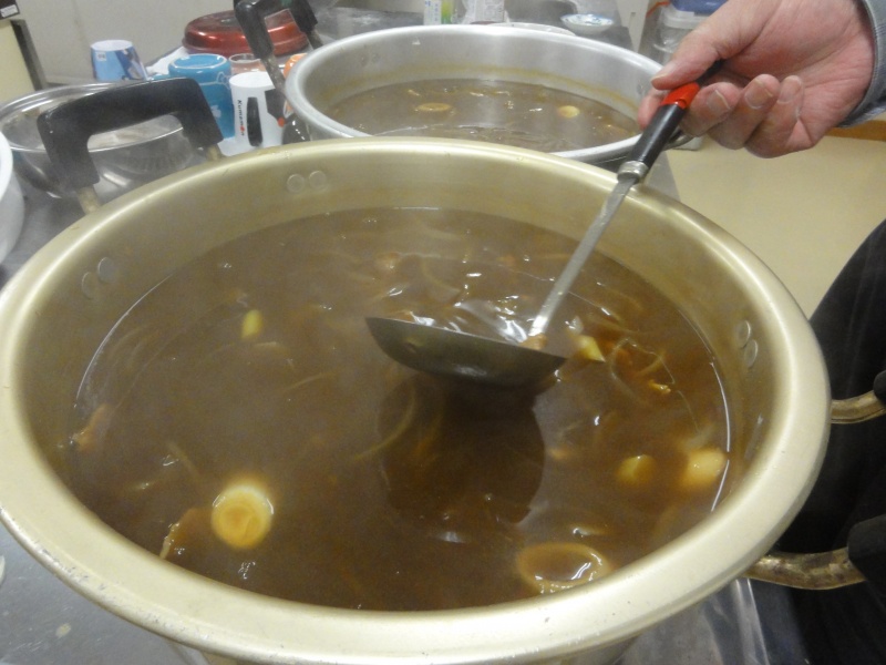 カレーの汁を作るグループ、面を打つグループと分かれて作りました。