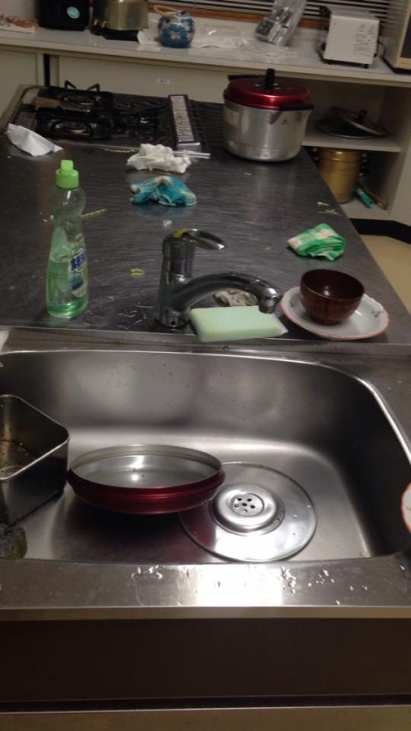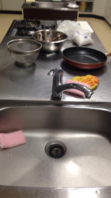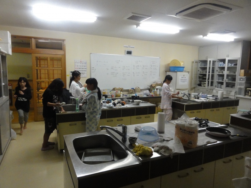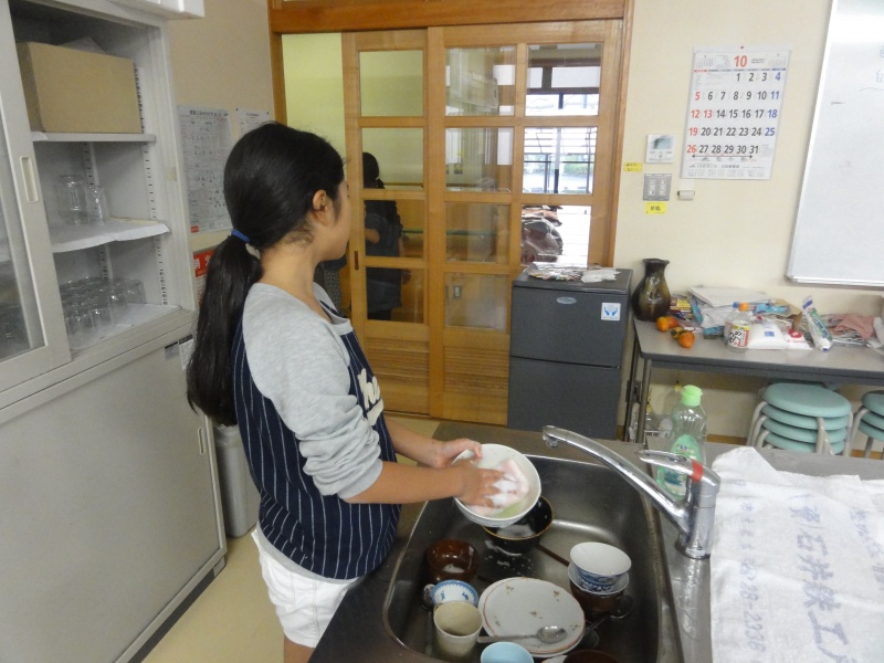 買い物班が行っている間掃除と朝の洗いものです。