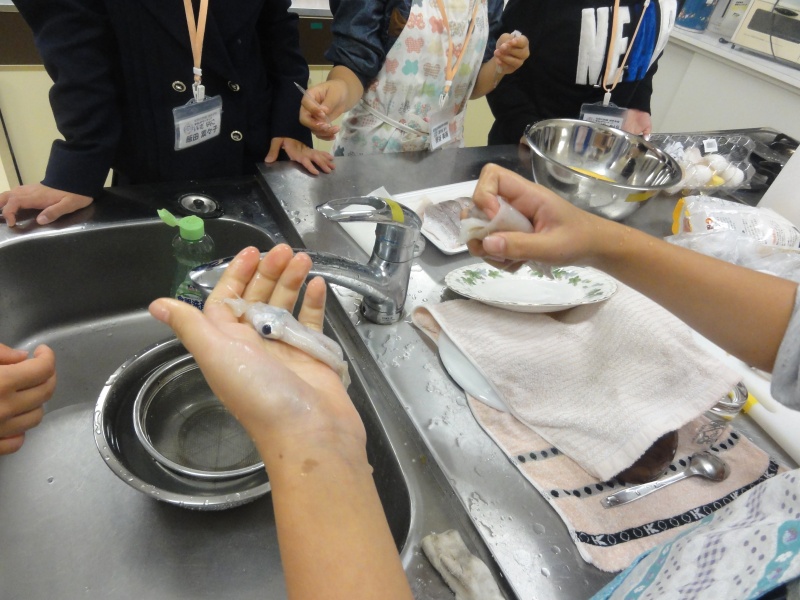 イカが暴れています。イカに水が付いていたら危ないと分かって良かったね