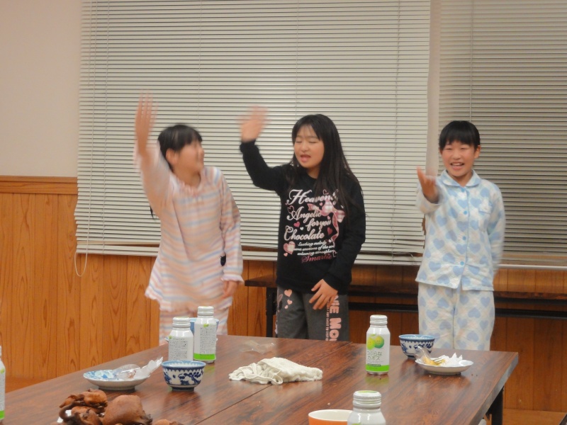 ボランティアさんとのお疲れ会で子どもたちが作った寸劇を高校生もお返しに・・・