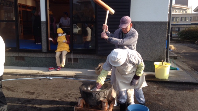 老人クラブさん、20如月会さんとチャレンジ生で餅をつきました。