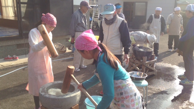 豚汁の野菜はJAいつわ会さんから分けていただき、餅米も地元でとれた餅米を今回は使用し、おいしくいただきました。