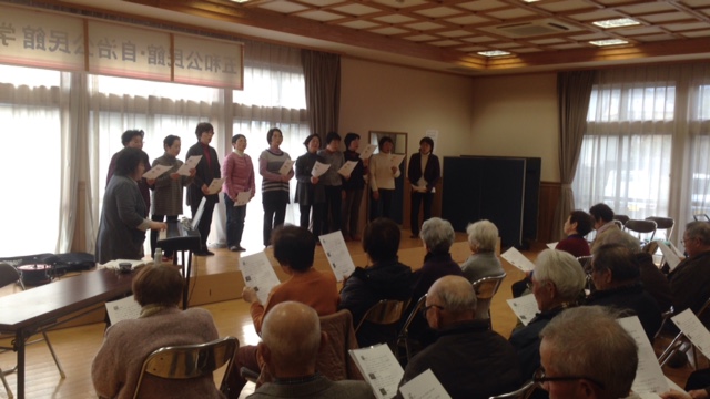 今日は、五和公民館の自主学習教室 歌の広場の藤原先生と教室生に来て頂いて第3講 音楽をたのしもう!という内容でおおいにみなさんで歌ってもらいました。
