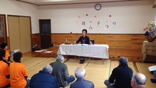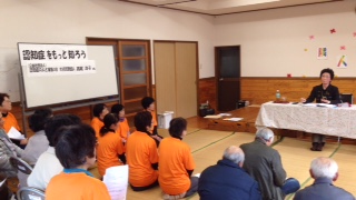 副代表の高尾洋子さんを招き、祭りの一コマで人権学習会が開かれました。