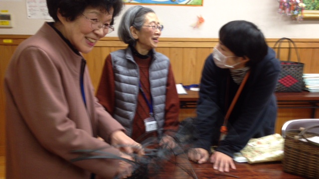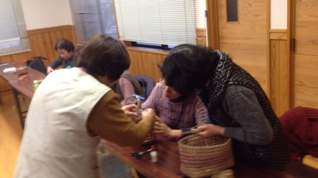 昨年からの籠バック作りを今日も楽しく学んでます。