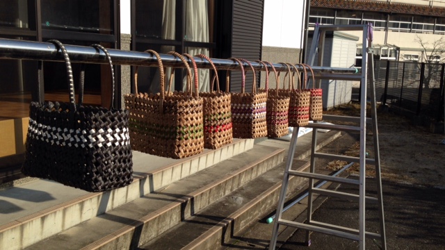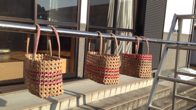 今日は始まる前に籠バッグに艶出し、防水の為のラッカースプレーを教室生の方が吹き付けてくれました。