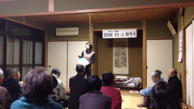 年々、認知症の方は増えていってます。参加された地区の方は他人ごとではないという意識をもって、認知症について学んでもらえたのではないでしょうか。
