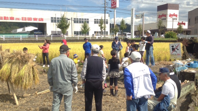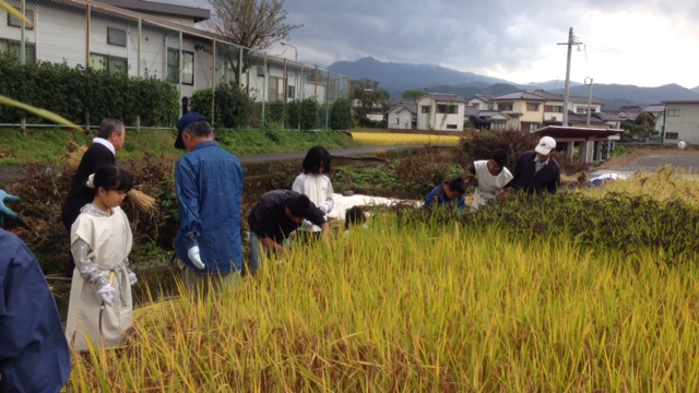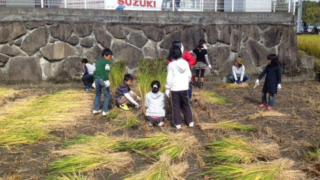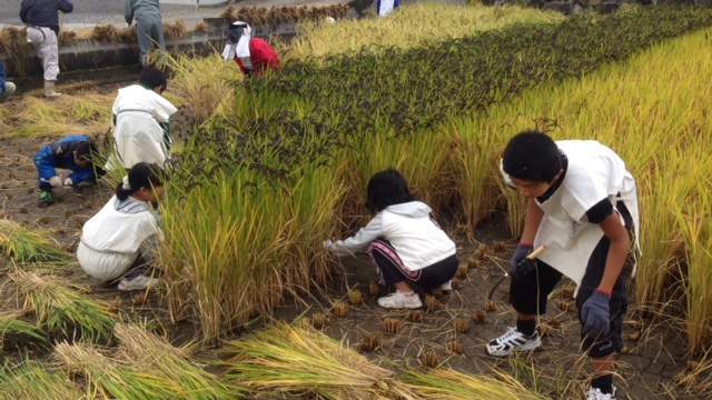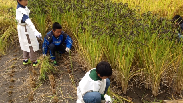 さすがに稲刈り鎌での手作業に子ども達も腰が痛いと弱音が出てきてます。
