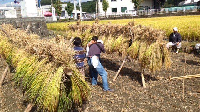 あとは、干した稲がスズメにやられないようにジャガイモを刺して作業終了のようです。