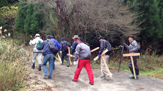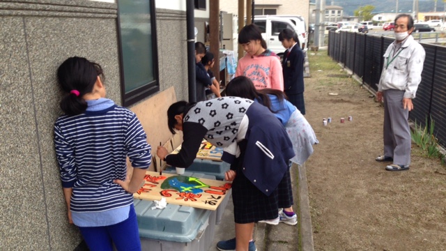 今日は、昨年卒業した中学1年生が案内板作りのアドバイスに来てくれました。