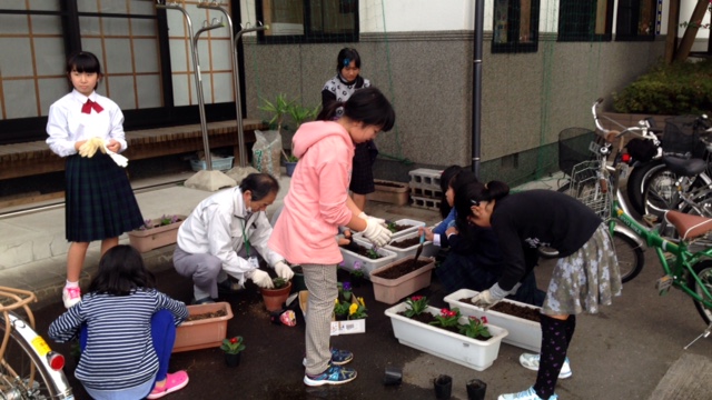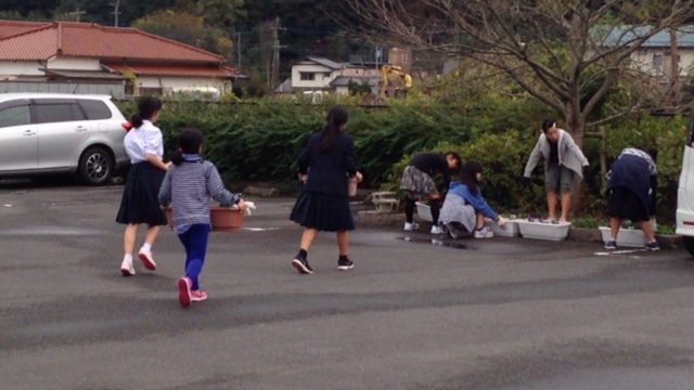 JAいつわ会のお母さん達、梶原さんのおかげで、予定よりかなり早く作業が終了しました。