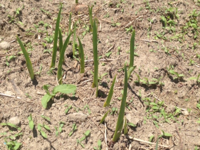 この前畑を耕して植えていたのですが…あちこちから芽が出てます!
