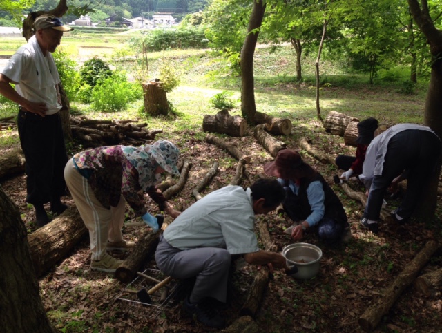 そして、平和台球場近くのよっちゃん工房にお邪魔して、椎茸のコマ打ちをして、持参したお昼をみんなで食べて今日は公民館に帰ります。iPhoneから送信