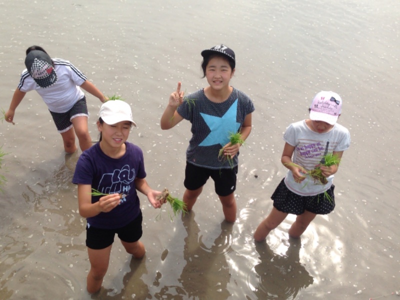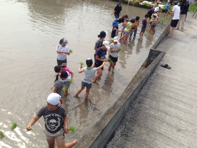 石松先生の説明を聞いて今年で9回目となる古代米の田植え体験の開始です。
