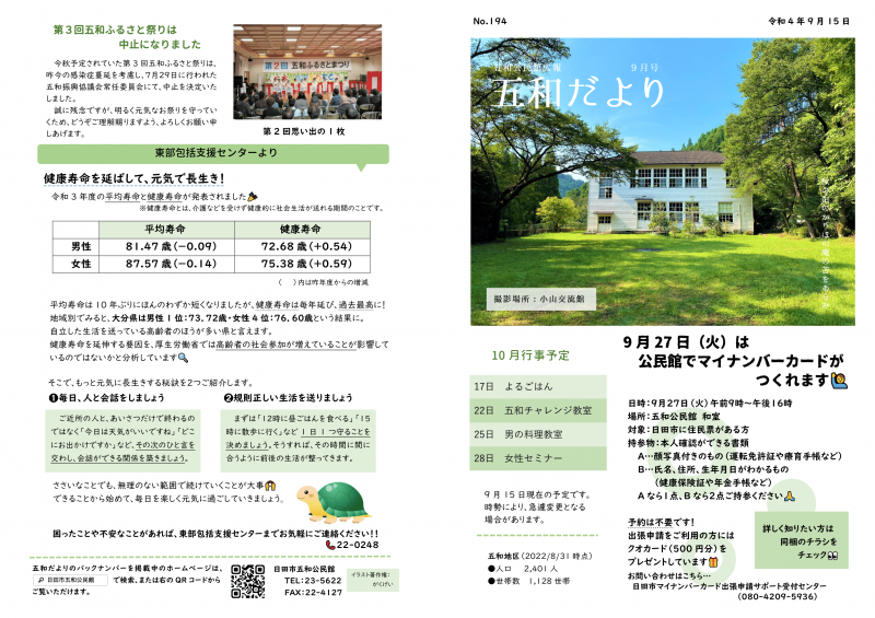 令和4年9月15日に五和公民館だより『五和だより』を発行いたしました。