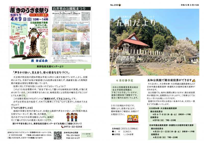 令和5年3月15日に五和公民館だより『五和だより』を発行いたしました。