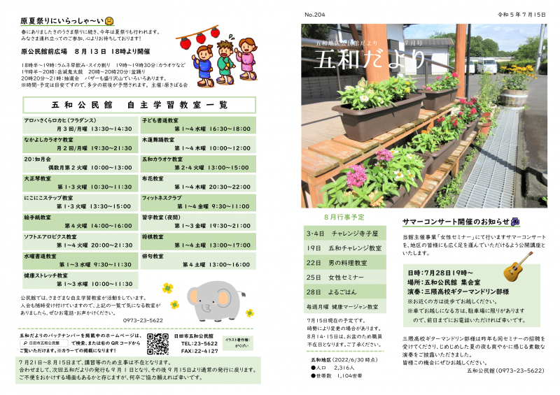 令和5年7月15日に五和公民館だより『五和だより』を発行いたしました。
