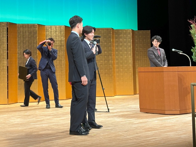 五和地区からは17名が参加、地区代表として宮﨑遥己さんが壇上で記念品を受け取りました。