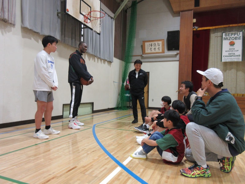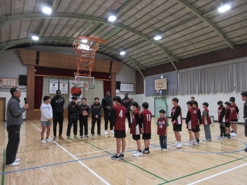 昨年度は石井小学校体育館に来てくださった、別府溝部学園高校男子バスケットボール部の留学生さんと、今度は現地で交流しました。